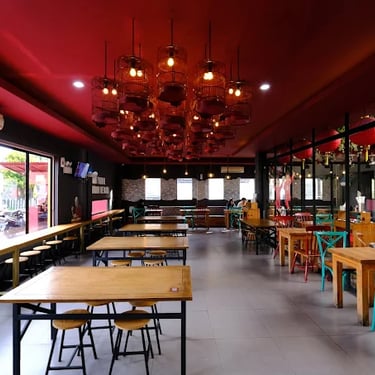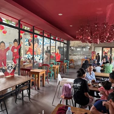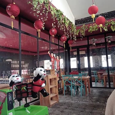 Ruang dine-in indoor ber-AC & semi-outdoor, mushola, odong-odong Panda